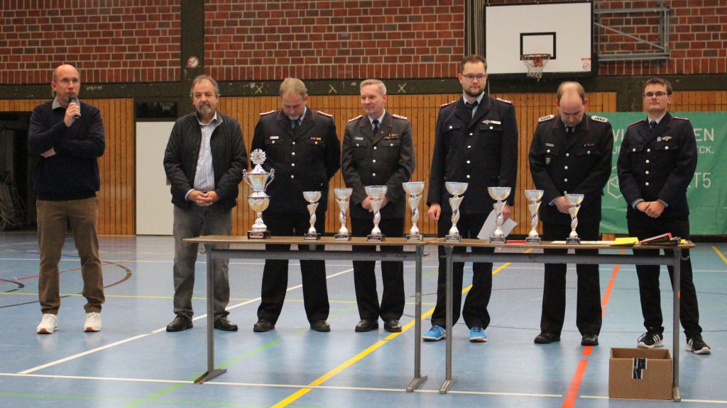 Der Nachmittag verging wie im Flug, bis schließlich die Siegerehrung stattfand. Nach den Grußworten der Ehrengäste wurden die Pokale an die besten Teams überreicht. Diese wurden unter anderem vom Samtgemeindebürgermeister Holger Bahrenburg, Bürgermeister Hans-Jürgen Krahn, Gemeindebrandmeister Björn Becker und Ortsbrandmeister Tobias Harling gespendet. Samtgemeindebürgermeister Bahrenburg bedankte sich stellvertretend für alle Unterstützer bei den Teilnehmenden für ihr Engagement und ihre Fairness sowie bei den Helferinnen und Helfern der Feuerwehr Stuckenborstel für die Ausrichtung des Turniers.